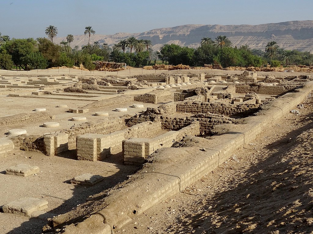 Wie du auf dem Foto unten sehen kannst, war die Gegend kein passender Ort für eine Stadt. Keine Handelswege führten durch die Wüste, keine Infrastruktur erleichterte den Transport von Material. Nur Wüste und Felsen. Doch bald herrschte große Betriebsamkeit rund um den Felsen. In nur drei Jahren wuchs aus dem Wüstensand eine Stadt, die heute unter dem Namen Amarna bekannt ist. Der Preis war hoch. Auf dem Armenfriedhof der Stadt fand man Überreste der Sklaven. Ihre Knochen sind gezeichnet von Mangelernährung und Verletzungen.