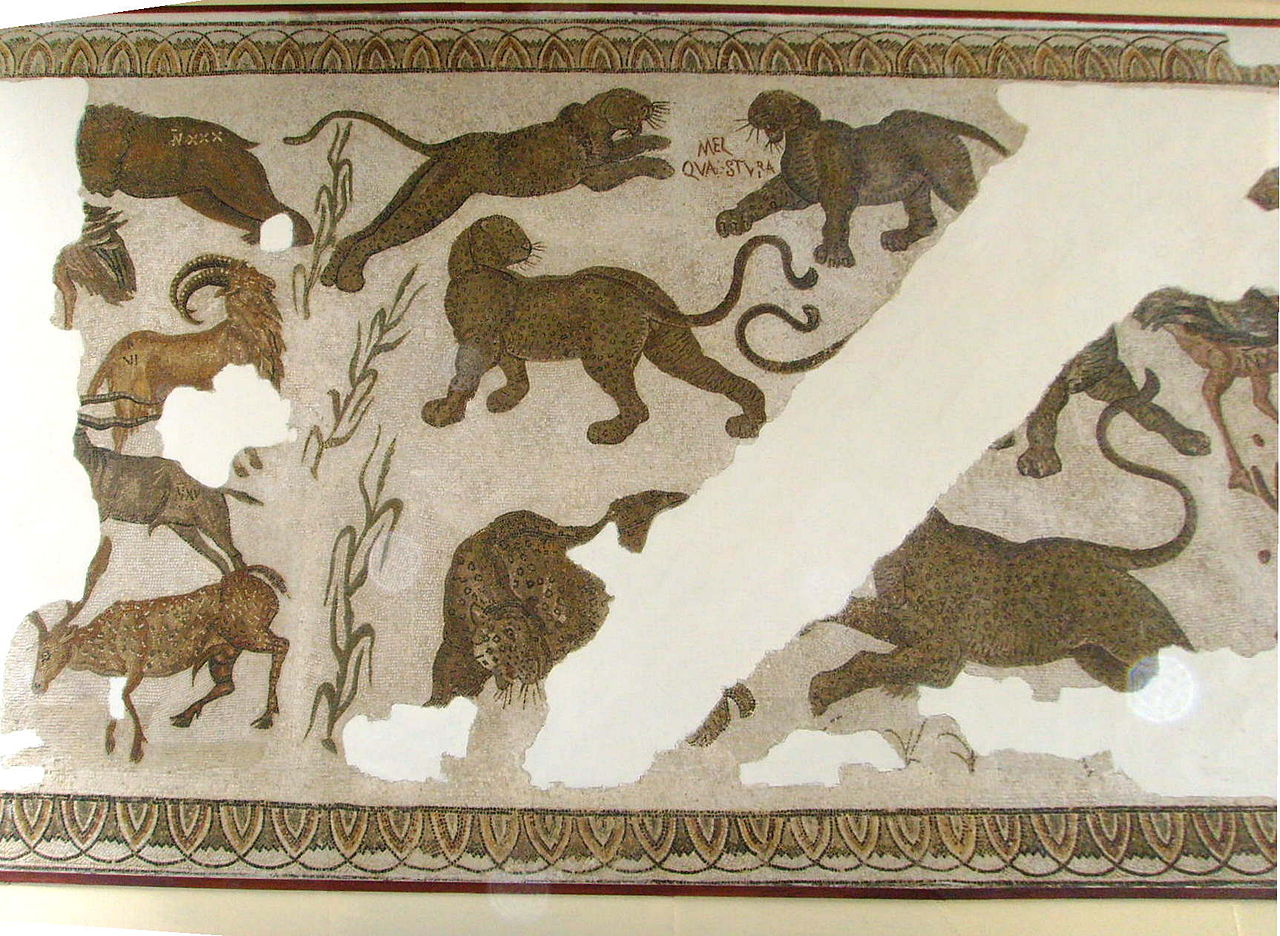Der Niedergang der römischen Provinz Africa begann im 4. Jahrhundert. Rom forderte immer höheren Tribut von seinen afrikanischen Provinzen. Die Menschen waren es leid, einen immer größeren Teil ihrer Ernte an die Besatzer abzuliefern. Unruhen brachen aus. In dieser schwierigen Zeit tauchte eine neue Macht in Nordafrika auf, die Vandalen. Die Vandalen kamen aus Germanien, sie befanden sich auf großer Völkerwanderung. Der Reichtum der römischen Provinz Africa hatte sie nach Afrika geführt. Unter ihrem Anführer Geiserich eroberten sie 439 n. Chr. Karthago und errichteten ihr hundertjähriges Vandalenreich. Auf dem Foto links siehst du ein Mosaik aus einer römischen Villa in Nordafrika.