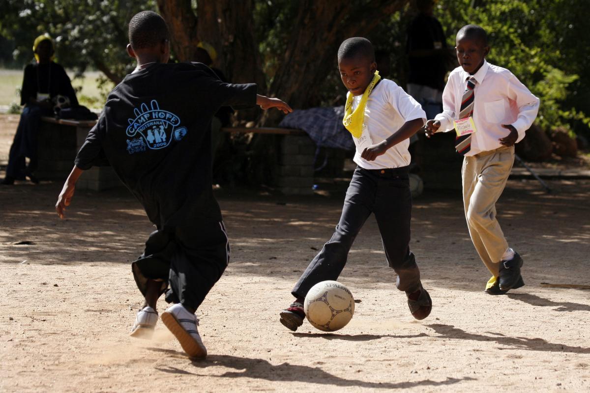 Ein großes Problem in Botswana ist die Krankheit AIDS. Über zwanzig Prozent der Botswaner sind mit HIV infiziert. Am meisten betroffen sind Erwachsene im Alter von 30 bis 35 Jahren. Viele Kinder sind zu Waisen geworden. Die Regierung und die Gesellschaft tun viel, um den Waisenkindern ein Heim zu schaffen. Doch ohne Eltern aufzuwachsen ist ein trauriges Schicksal. Heute kann die Krankheit gut behandelt werden, doch die Kosten sind hoch. Staat und internationalen Organisationen tun viel, um die Kranken zu behandeln und die Ausbreitung der Krankheit einzudämmen. Es gibt viele Aufklärungskampagnen darüber, wie die Krankheit verbreitet wird. Und tatsächlich konnten erste Erfolge erzielt werden. Denn immer weniger Menschen stecken sich mit dem gefährlichen Virus an. Auf dem Foto links siehst du Waisenkinder beim Fußballspielen in der Marapula Schule in Gaborone.