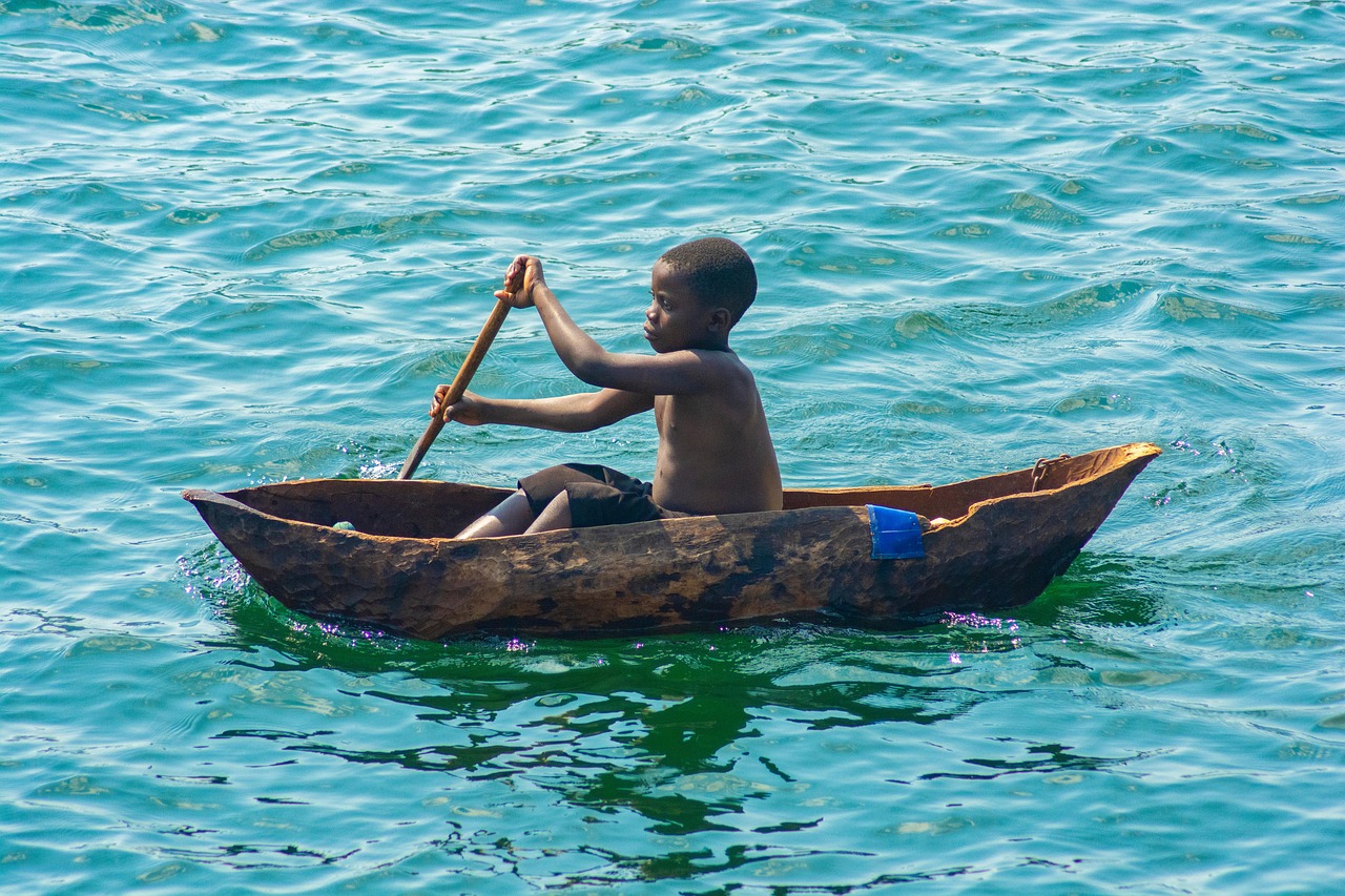 Im zentralafrikanischen Graben haben sich die “Großen Seen” Afrikas gebildet, der Albertsee und der Tanganjika-See, den du auf dem Foto oben siehst. Die malerischen Ufer des Tanganjika-Sees im Südosten erinnern an die französische Riviera. Der Tanganjika-See ist der zweitgrößte See in Afrika. Er ist bis zu 1.450 Meter tief. Sein Einzugsgebiet beträgt 231 000 km². Er ist sehr alkalisch, trotzdem ist er sehr fischreich. Über 310 verschiedene Fischarten leben darin, die meisten sind endemisch, das bedeutet, sie kommen nur hier vor. Die häufigste Fischart sind Buntbarsche. Die meisten Anwohner leben vom Fischen. Die Kinder suchen am Strand nach Muscheln und Krebsen, während die Väter und älteren Geschwister den Fang abladen. Auf dem Foto unten siehst du den Kivu-See. Durch diesen See verläuft die Grenze zwischen der DR Kongo und Ruanda. Der See enthält Methangas, daher ist er nicht sehr artenreich.