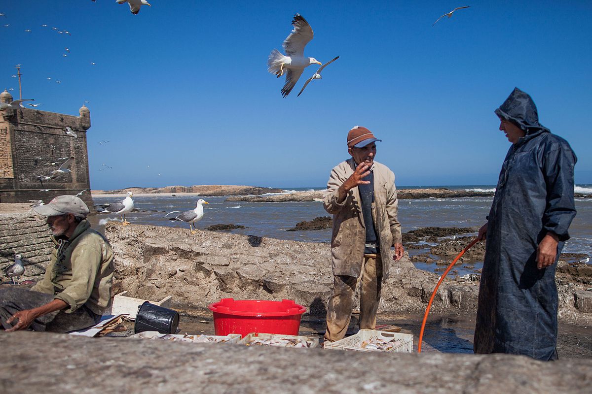 Vom traditionellen Fischfang können viele Fischer heute nicht mehr leben, denn die Küsten sind durch den industriellen Fischfang leer gefischt. Mehr als 750 000 Tonnen Fisch werden jährlich gefangen. Seither versucht die marokkanische Regierung, einen "blauen Gürtel" um seine Küsten zu ziehen. Hier soll nur noch nachhaltig gefischt werden, um den Fischbestand zu erhalten.