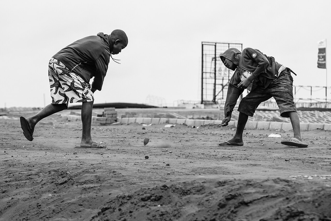 In Simbabwe sind viele Böden noch nicht durch Asphalt versiegelt. Besonders in den Dörfern leben die Menschen auf festgetretener Erde. Und die Kinder spielen auf der Erde oder im Sand. Eines ihrer Lieblingsspiele ist Fußball, viele spielen auch Murmelfußball, wenn kein richtiger Fußball in der Nähe ist oder ein Versteckspiel. Das geht so. Ein Spieler errichtet einen kleinen Sandhaufen, in dem es einen Gegenstand versteckt, eine kleine Frucht, einen schönen Stein oder einen Flaschenkorken. Die anderen Kinder setzen sich um den Sandhaufen herum und graben den Berg langsam ab. Das Kind, das den Gegenstand zuerst gefunden hat, hat gewonnen. Ein weiteres beliebtes Spiel ist das Xindire Spiel, das die Jungs auf dem Foto rechts spielen.