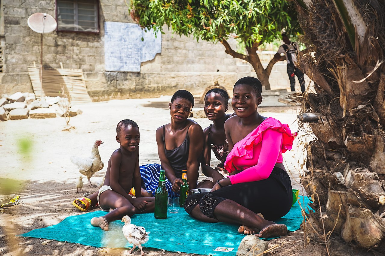 Über vierzig Völker leben in Togo. Die größte Bevölkerungsgruppe bilden die Ewe, die du auch in Ghana antriffst. Einst hatten die europäischen Kolonialmächte den Lebensraum der Ewe aufgeteilt in Togo und Ghana. Deshalb leben die Ewe heute in zwei verschiedenen Ländern, doch sie sprechen dieselbe Sprache und pflegen dieselbe Kultur.