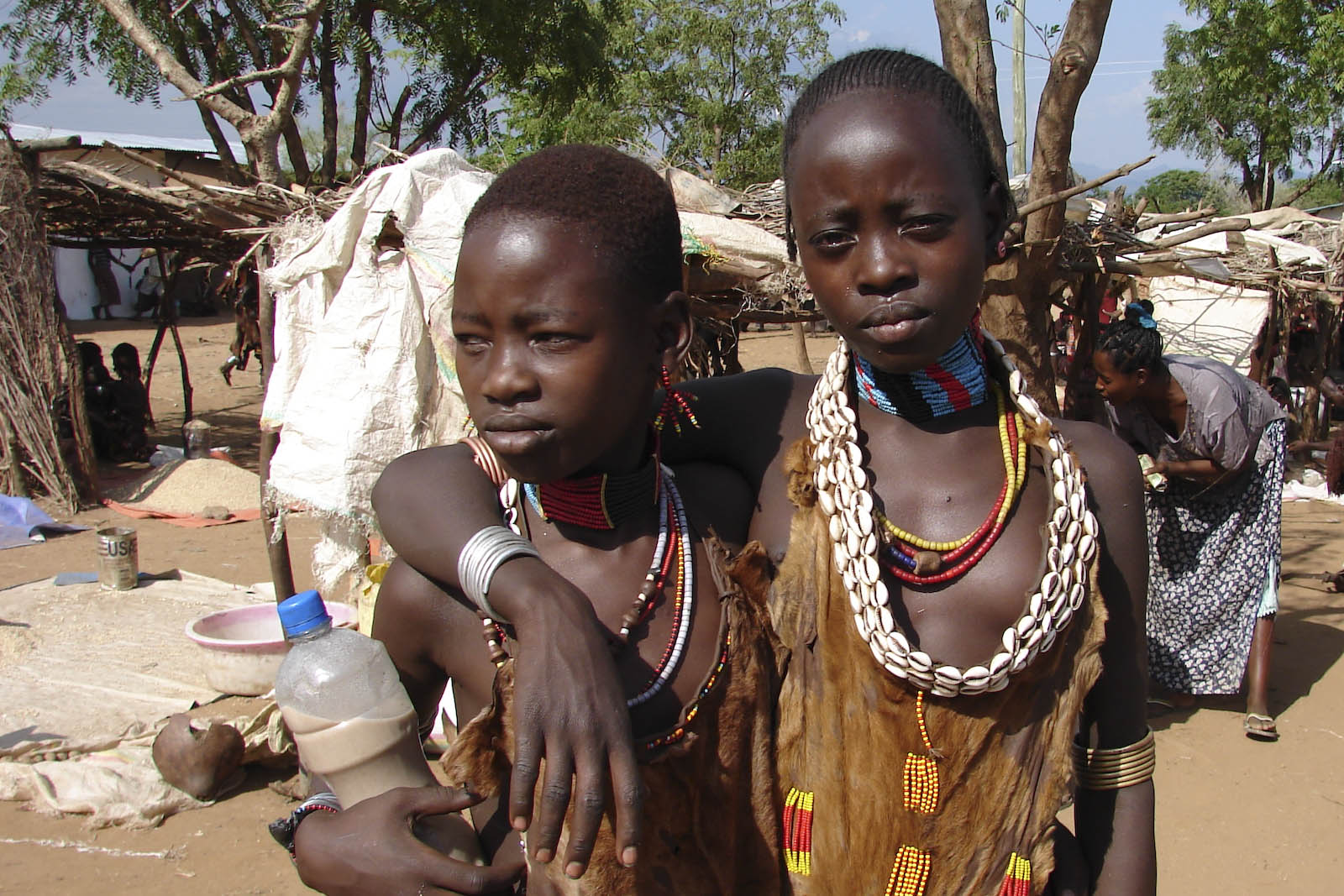 Aus Muscheln kann man wunderschönen Schmuck herstellen, das wussten schon unsere Vorfahren, die in Afrika vor 75 000 Jahren lebten. In Höhlen fanden Forscher durchbohrte und mit Farbresten versehene Muscheln, mit denen sich die Frauen damals geschmückt hatten. Heute sieht man noch in vielen Regionen Jungs und Mädchen, die Muschelschmuck tragen wie die beiden Geschwister aus dem Volk der Hamar, die in Äthiopien leben. Die Kette des Mädchens ist aus Kaurimuscheln gefertigt, die du in jedem Afro-Shop bestellen kannst.