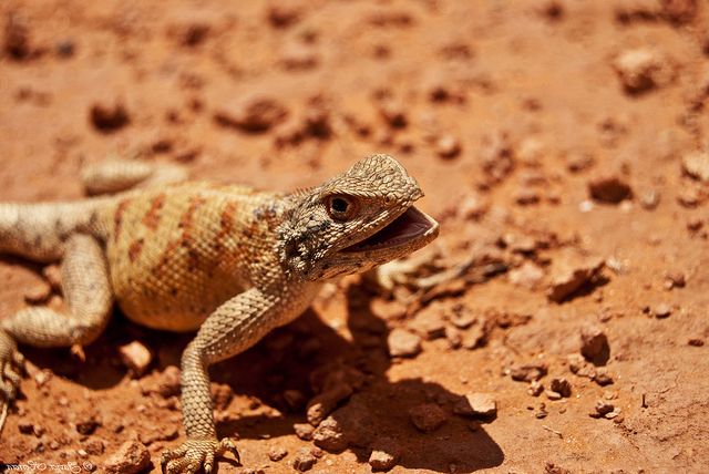 Echsen können von allen Wüstenbewohnern am längsten in trockenen Gebieten ausharren, deshalb finden sich in der Sahara viele Eidechsen, Warane und Geckos. Überlebenskünstler unter den Echsen sind die Agamen . Ihre Hornschuppenhaut schützt sie vor der sengenden Sonne. Sie brauchen kein Wasser, denn das nehmen sie mit der Nahrung auf. Auf ihrem Speiseplan stehen Insekten, einige futtern auch Pflanzen. Nicht nur die Nomaden haben es auf ihr wohlschmeckendes Fleisch abgesehen, auch Bussard, Sandfuchs und Schakal verschmähen sie nicht. Deshalb halten sie sich immer in der Nähe ihres unterirdischen Baues auf.